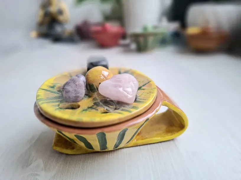 1. Zapalite tamjan, palo santo ili biljnu kadilicu prema uputi i postavite u kadilicu dok ne počne lagano dimiti.
