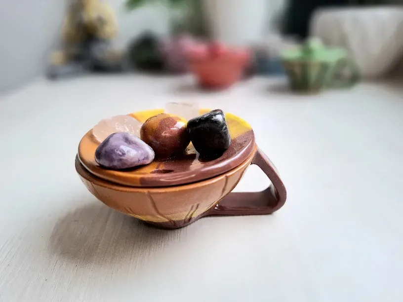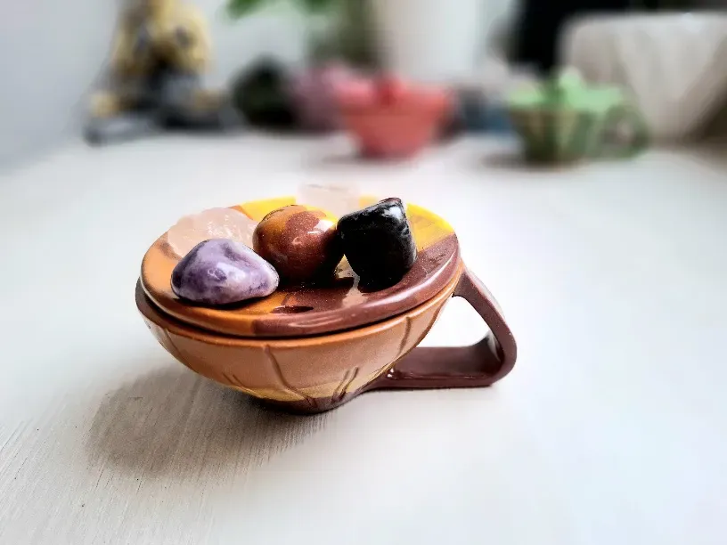 Ne trebate znati kako se pojedini kristal puni, na mjesečeni, pod vodom, na suncu i sl. Svi kristali se mogu “puni ili čistiti” nad dimom tamjana, palo santa ili kadulje. Poklopac kadilice na napravljen tako da se na njega postave kristali dok ih obavija dim koji se diđe iz kadilice. Jednostavno, sigurno i estetski skladno rješenje za punjenje vaših kristala.
